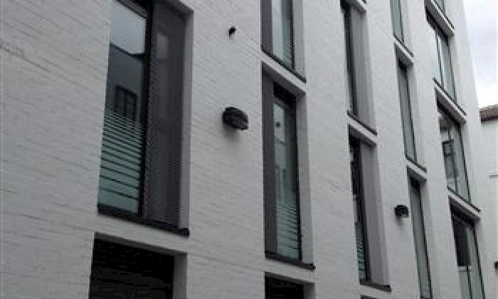 The site was further complicated by houses and shops either side and a block of apartments above and behind the new building.