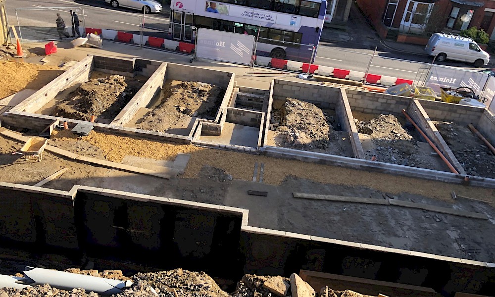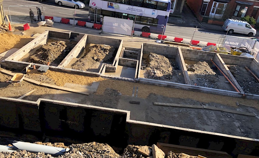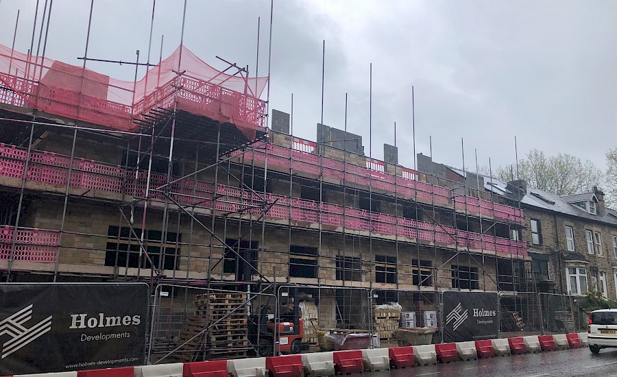 Bank Apartments is a £1.2M new build, stone fronted building of 10 private apartments. The site was complicated by its position against the main road and the requirement to remove 1000 m3 of rock to form the footprint of the building.