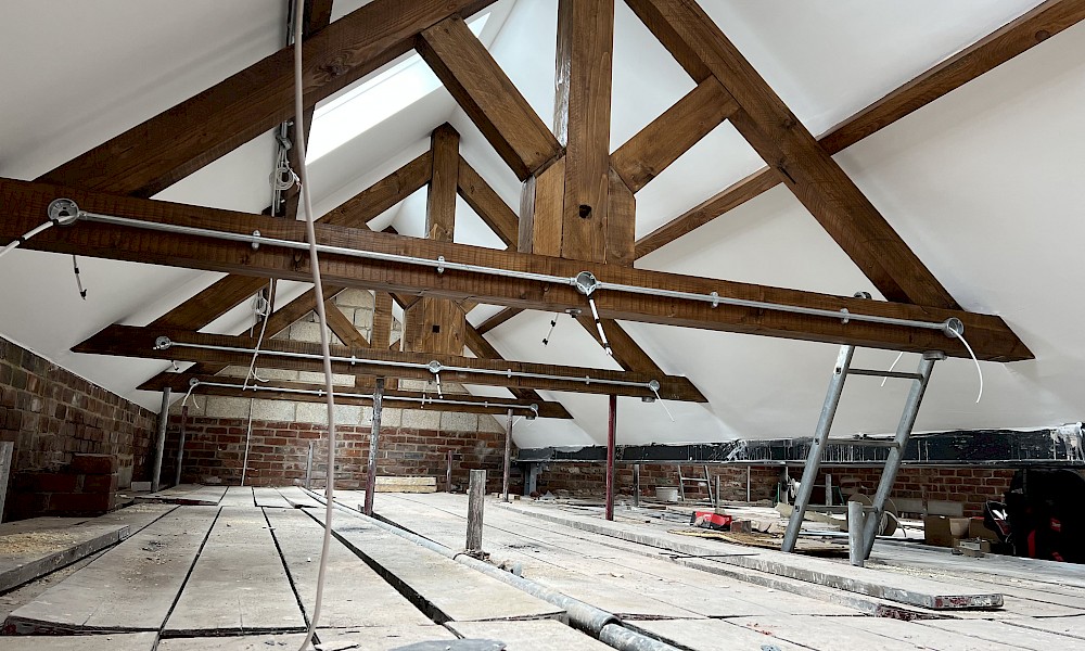 The existing buildings were in a very poor state and required extensive structural works before the conversion works could begin. All roofs were removed, repaired and in some cases reconfigured before being recovered.